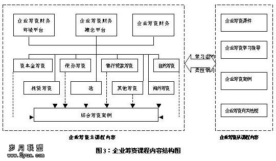所谓的从课程内容体系,并非这部分内容不重要,只是这部分内容是主课程内容的另一种表现形式,是为了满足学习者个性特点而设计的内容,具体体现在以下几方面:1.学习者可以挑选自己感兴趣的学习方式,比如,他不喜欢课堂上老师面对面的教学方式,宁愿自己看着POWERPOINT等课件有选择地学习,以便自主决定学习的内容和学习进度,营造适合个性特点的学习氛围。2.学习者可以挑选感兴趣的案例进行模拟练习。从课程资源库中应该建立不同行业、不同类型企业的有关筹资案例满足学习者的兴趣需要。3.学习者还可以根据自己的进度挑选合适的练习材料。在学习指导中应该提供包括课程简介、课程重点与难点介绍、各章具体学习要求以及自测题等内容,学习者可以据此安排自己的学习重点,调整学习进度。4.学习者可以通过阅读企业筹资有关法规,根据需要增进对我国有关筹资法律法规的了解。