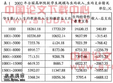 学术界对高职院校规模效益做系统研究的比较少,其中比较有代表性的研究者是湖北大学校长熊健民。他根据2002年高职院校的收入与支出情况,得出仅从生均经常性支出来看高职院校的适度规模是11410人;仅从生均总支出来看高职院校的适度规模是12716人。也有学者提出高职院校的适度规模是5000人。