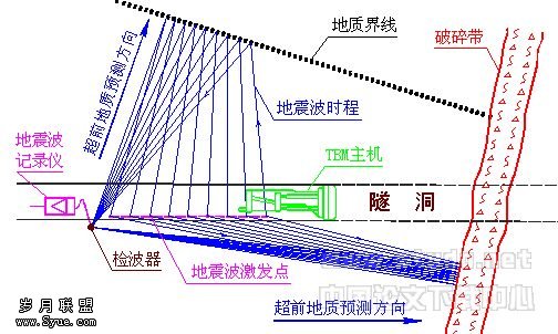 ⑵超前地质预报是指:为防止TBM掘进时遭遇未知的不良地质体而进行的超前地质勘察、超前勘探钻孔、超前仪器测试等,对隧洞掌子面前方长距离范围内的不良地质体进行预报。所采用的主要手段为:地面地质预测、超前钻孔、地质雷达测试、地震波超前测试等,然后将采集的数据进行整理,从而对不良地质体可能被揭示的位置进行预报。