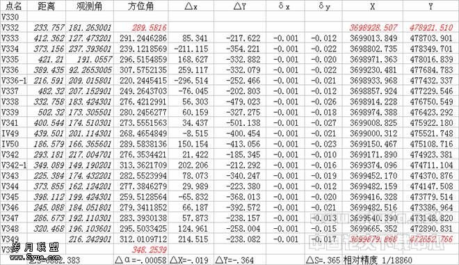 如果自己定义一个名字叫“计算”的按钮,指定此工具的宏为“单一附合导线计算”,那么,只要按下面的格式输入原始数据(斜体是输入的),点“计算”就可以得到计算结果了。所有的过程都是自动的,无须再手工填写,是不是很方便?
