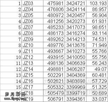 当然,你在Excel上同样可以再加个工具按钮,比如叫“展点”,指定宏为“显示对话框”,只要你的Excel有了X,Y或者X,Y,Z(格式如下表),点击“展点” 就可以自动启动A utoCAD展点啦!当然,如果A utoCAD已经启动,就直接在已经打开的A utoCAD文档中展点,展点完毕后,会显示一个对话框,提示“展点完毕“,再切换到A utoCAD看看,你所要展的点是否已经出现了?如果没有输入错误,应该可以得到满意的结果。如果有点号,还可以显示点号,并且可以输入字体的高度。