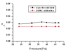 在实验的过程中对真空度数据进行实时采集、处理,实时计算传输几率。对于内径15.98mm、外径16mm、长16mm的环状管路,根据分子流区域的划定,在这间隙密封环形通道中,只要压强小于50帕便可视为分子流。在不同压强下测得的传输几率值与蒙特卡罗法计算的数值比较如图5所示。
