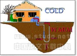 土--气型地源热泵技术以美国的技术为代表,水--水地源热泵技术以北欧的技术为代表。二者的差别是:前者从浅层土壤或地下水中取热或向其排热,通过分散布置于各个房间的地源热泵机组直接转换成热风或冷风为房间供暖或制冷。后者是从地下水中取热或向其排热,经过热泵机组转换成热水或冷水,然后再经过布置在各个房间的风机盘管转换成热风或冷风给房间供暖或制冷。由于美国的土--气型地源热泵技术,可以不用地下水,采用埋设垂直管、水平管或向地表水抛设管路等多种方式,直接从浅层土壤取效或向其排热,不受地下水开采的限制,推广的范围更大、更灵活。