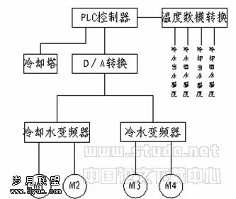 为了解决以上问题,我们打算利用变频器、PLC、数模转换模块、温度模块、温度传感器等构成的温差闭环自动调速系统。对冷冻、冷却水泵、冷却塔进行改造,以节约电能。