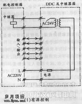 ◎本地DDC的电源(AC 220V)由配电控制箱提供,上图DDC有源控制和无源控制两种方式,笔者认为优选有源控制,因有时配电控制回路并未设控制隔离变压器,这样无源控制触点有可能直接接人AC 220V回路,造成与其他控制线路不能共管敷设;另一方面,自控系统的控制电源宜由自己提供,避免造成扯皮现象。