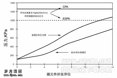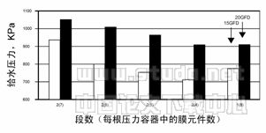 随着水温度上升,这两类膜元件的能耗差的绝对值和百分数都减少,采用段间加压泵来改善装有ESPA膜元件的系统的水通量分布,不会导致能耗产生明显变化,采用混合膜元件的系统的能耗,即在一个装置中同时使用ESPA膜元件和CPA2膜元件的能耗位于单独使用这两种膜的装置的能耗之间,与带段间加压泵的系统相比,这种使用混合膜元的设计为水通量分布不均匀的场合提供一种间单的、低费用的解决方案,但能耗相对较高。