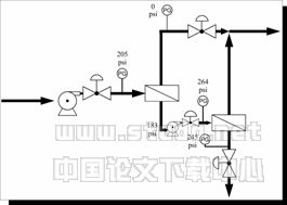 图4 带有一段产品水背压的RO系统 图5带有段间增压泵的RO系统