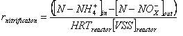 HRT是水力停留时间,[VSS]reactor是生物量浓度,[N-NH4+]in是流进氨氮浓度,[N-NH4+]out是流出氨氮浓度,[N-NOX-]in是流进氮氧化物浓度以及[N-NOX-]out是流出氮氧化物浓度。