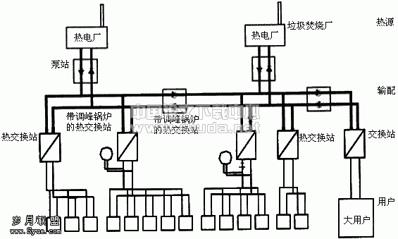 以前相关杂志介绍地国外楼栋式热力站,这种形式优点很多,但投资相对贵些。以下介绍丹麦哥本哈根西部集中供热系统(VEK),它是目前北欧集中供热的典型系统(见图1)。图1所示系统具有如下特点:
