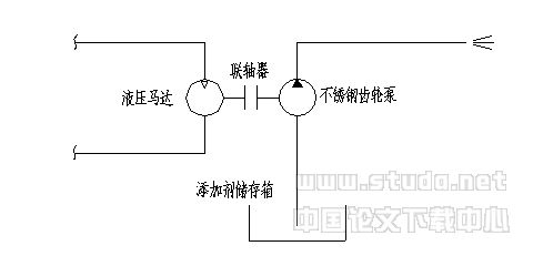 以上从不锈钢齿轮泵和液压马达两个方面我们分析了该套方案的可行性。我们可以看出,在不锈钢齿轮泵这个环节来看,该方案的效果不是很理想。经我们对道路施工和养护单位的调查,现在国内的筑路机械生产厂家有采用该套方案的设备(如西安筑路机械厂)。但经道路施工和养护单位使用后反映:该系统工作效果不好,在小流量情况下,齿轮泵输出的添加剂流量很不稳定,有时有,有时没有,有时吸不出添加剂(在很小流量下)。