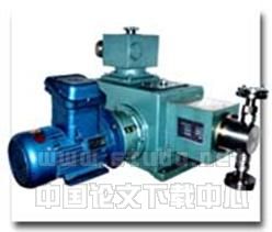 根据我们的设计要求,我们可以选择来达到我们的要求。的工作范围完全可以满足我们的要求,而且的体积小,计量精确度高,通过调速就可以满足我们的要求。的外形如下图3所示。由的结构和对工作环境的要求可以看出:和电机直接通过法兰连接,电机需要电气环境底盘车无法提供(需要市电),所以只能将电机去掉,采用别的动力源如液压马达等,但是在当前所生产的都是电机与泵头直接连接的形式,去掉电机后,泵头根本无法和别的动力源连接,所以这一方案是不可用的。