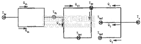 图中各符号中,T表示绝对温度,Q表示换热量,其各下脚标意义如下分析所指。