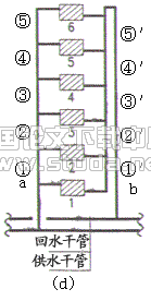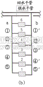 结论:以上分析表明:1.最佳的主立形式为下行下给式,如图(一)(c)所示:2.在不额外设置水力平衡元件的前提下,主立管可以负担的合理最多层数为≤16层;3.为了更加有利于新双管系统的水力平衡,主立管比摩阻的取值应为R=30~60Pa/m,且宜取下限值,而不是传统室内采暖系统形式所建议的R=60~80Pa/m。重力水头系数应为1/2~1/3,户内系统水力损失宜取为20kPa~30kPa,且不宜低于20kPa。
