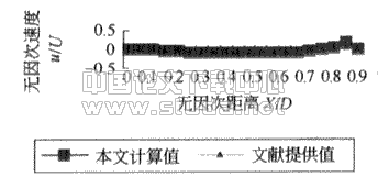 取截面(Y/D=0.5)上的速度矢量与[9]比较,由图7及图8可发现两者相差甚微,再次证明本文改进格式的有效性。笔者在计算过程中还比较了一般程度消耗CPU时间一本文所花的时间相差不大,可能是因为物理模型规模较小所致。但是对于规模较大、风格划分不均匀的情形,本文的离散方程具有不可替代的优势。