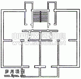 为了进一步分析邻室传热的影响,我们选择了另一种户型进行计算,其围护结构的传热系数与上一户型(见图2)是基本相同的。新户型的示意图见图3,计算结果见表5。