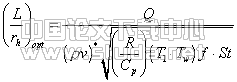 上式中,L是管长,m; rh是流道的水力半径,m;(v)是质量流速,kg/sm2;f是沿程阻力系数,它是雷诺数Re的函数,即f=f(Re)。定义G*为无因次质量流速: