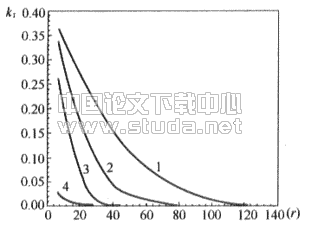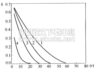 新风独立处理的水环热泵空调系统在四个城市中的kr~r,kL~ra的关系示于图6和图7上。当求得c、k后,可由式(8)计算出b参数。