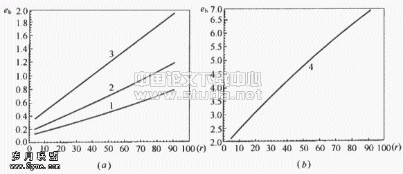 参数eb是常规空调系统的电热能耗比,eb与r的关系示于图8(a)、(b)上。计算中应注意,这里的参数r 值应由公式