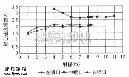 为了确保无风道诱导风机通风空调系统的可靠性,笔者委托国家空调设备质量监督检验中心对TOPVENT® 2型诱导风机机组和空调机组用DVN球型喷口性能进行了检测,图2为诱导风机用球型喷口的轴心速度常数K1和图3是DVN球型喷口的轴心速度常数K1的测试结果。 | ||||||||||||||||||||||||||||||||||||||||