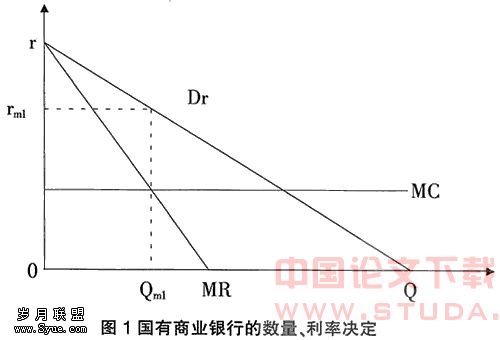 在没有民营银行进入,只有国有商业银行垄断的情况下,国有商业银行垄断条件下的贷款数量和利率决定如图1。