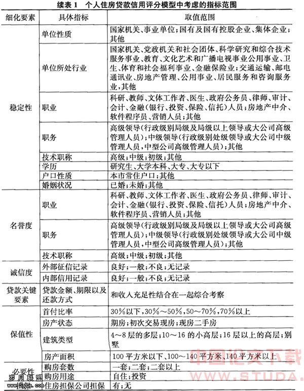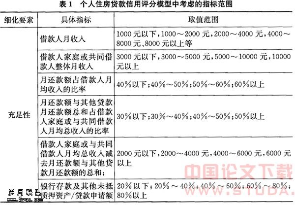 ①建立指标体系。即给出个人住房贷款信用评分定量模型的使用指标范围,类似于表1的内容。