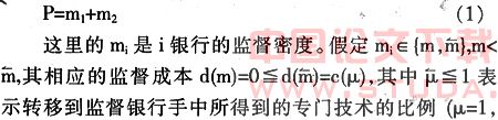 对于经理来讲,我们假定:新项目得到投资的概率为e=1-(1-e1)(1-e2),这里的ei表示银行经理i取得专门技术的密度;项目的完成需要2个银行的共同监督。更加正规地讲,新项目成功完成的概率为:
