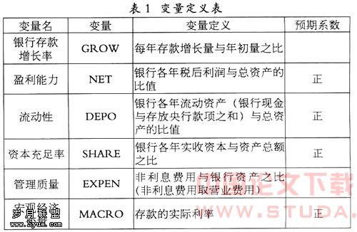 1、模型设定。我们采用固定影响可变截距模型来分析。估计方程:GROWi,t=α1βRISKi,t-1+γMACROt=εi,t,其中εi,t~N(0,δ2,方程中个变量的含义为:GROWi,t代表银行i在时期t的存款增长率。RISKi,t-1代表银行i在t时期银行风险滞后一阶变量。MACROt代表宏观控制变量。