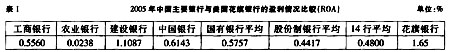 银行盈利能力评价的常用指标是资产利润率(ROA)和资本收益率(ROE)。表1和表2是我们根据相关数据的2005年我国14家主要商业银行②和美国花旗银行的盈利情况比较,使用的分别是ROA和ROE两个指标。