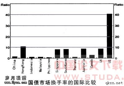 (三)与国际市场相比较,市场流动性仍然较低。虽然我国银行间债券市场交易量大幅增长,但在很大程度上源于债券存量增长,因此总体来讲流动性仍然较差。市场流动性可以从换手率指标进行判断,2005年我国银行间国债市场的年换手率仅为0.88,而从国际比较来看,同期美国国债市场的换手率高达40,其他发达国家债券市场的换手率一般也达到10左右。这反映了我国债券市场虽然总量快速扩张,但是市场微观结构和运行效率仍然有待改进。现券市场流动性不足使债券市场作为流动性管理的效果大打折扣,也影响了债券市场的价格发现功能,进一步降低了市场的运作效率。