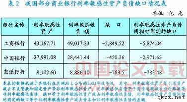 目前在国内金融机构中,不同业务部门对利率风险的敏感度相差甚远:参与货币市场日常交易者已感到“狼”正在敲门,而传统的存贷业务部门则感到相对比较“安全”。这与国内利率市场化改革的步骤安排有关,存贷业务还基本属于被保护的范围。这一方面表现在存贷息差比较大,同时,银行的多数贷款合同都把利率风险转嫁到了客户身上。在贷款合同中,一般都具有这样的约定,即商业银行有权根据央行指导利率逐年修订贷款利率。从国外的经验看,随着零售银行业务竞争的加剧,金融机构将利率风险简单地转嫁到客户头上的作法,最终将失去市场竞争力。因而面对利率市场化改革,管理利率风险对我国商业银行来说是迫在眉睫。(见表1)