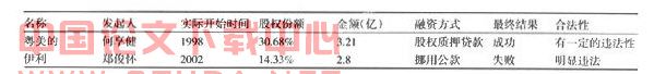 郑俊怀等人以国债投资委托理财名义,将伊利股份资金分多次通过伊利股份子公司牧泉元兴公司,以国债投资委托理财名义,将现金打入闽发证券和金通证券。最终通过国债回购变相融资进行MBO。而粤美的MBO过程中,美托投资公司两次收购所用的资金,全都是通过股票质押而获得的银行贷款,而公司管理层个人通过美托投资间接持有公司股份,应先支付10%的现金,其余部分以后分期用红利付清。