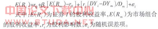 (6)CAPM法。该法运用CAPM模型来研究股利收益率与股票收益率的关系。在标准CAPM模型基础上增加——股利变量,以反映股利变化对股票收益率的影响;然后进行横截面回归,通过分析股利变量的系数来判断股利与税收的关系。增加股利变量后,修正的CAPMM模型变为: