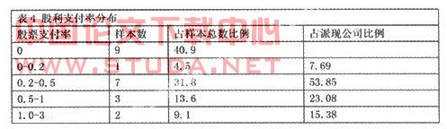 4.股利支付率较低且差异明显。看其分布状况(表4),股利支付率处于0.2-0.5区间的公司数最多,占样本公司总数的31.8%,占派现公司数的53.85%。总体来看,我国上市公司股利支付率较低。