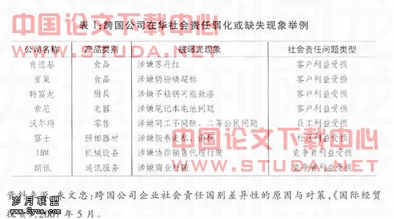 二、跨国公司在华社会责任弱化或缺失的表现