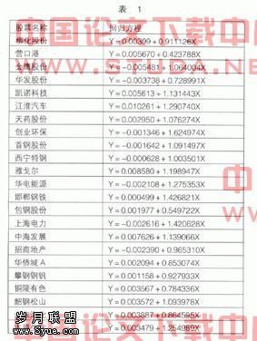 依据上面样本选取条件,笔者选取了柳化股份等23只个股,每只个股仅选择了一次转股行为。据此对上述样本股票的转股行为前70~ 21个交易日的个股收益率和指数收益率的数据进行线性回归,得出的回归方程分别如表1所示。
