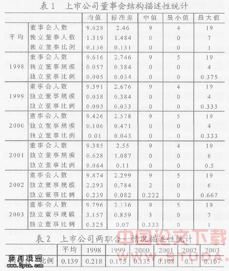 本文其余部分结构如下:第二部分描述所采用的数据,并对我国上市公司的董事会结构进行了描述性统计;第三部分提出基本观点和假设和研究方法;第四部分介绍实证研究结果;第五部分为结论。