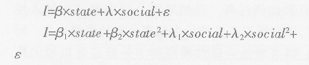 其中当第一大股东持股超过50%时c为1,其他情况为0。这样β1和β2。分别表示股权集中度对控股型公司和非控股型公司独立董事比例的影响,β3和β4分别表示股权集中度对民营和非民营企业独立董事比例的影响。