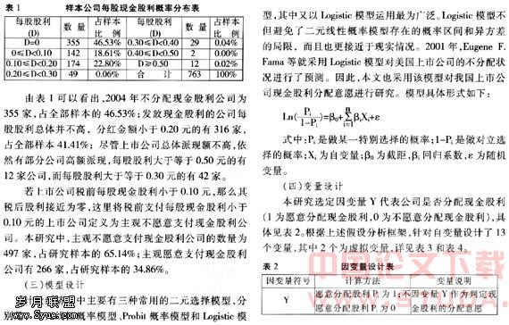 假设二:流通股比例越低,发放现金股利的意愿越强烈。流通股比例越低,意味着国有股和法人股等非流通股比例越高,由于国有股和法人股的不流通性,国有股和法人股往往偏好现金回报。因此,流通股比例越低,越可能愿意发放现金股利。