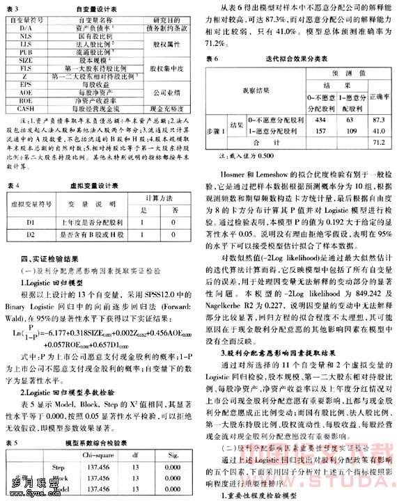 通过对2004年上海证券交易所的763家上市公司现金股利分配意愿的Logistic回归和因子分析双步骤实证研究,得出以下结论: