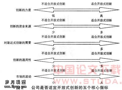 作者认为,除了行业特点和商业环境外,公司内部的组织结构在公司选择创新模式的过程中,也起到重大的作用,这里的组织结构包括组织分权程度,组织文化等。更开放的组织文化和更高的分权程度都会增加公司对开放式创新模式的适应性。