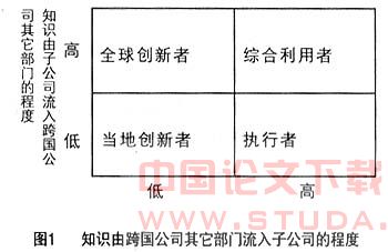 跨国子公司。从近年来跨国公司的发展来看,随着海外子公司规模的发展和资源的积累,海外子公司在跨国公司体系中担任着越来越重要的角色。它们不但是知识的接受者,而且成为知识的创造者和贡献者。跨国子公司在知识创造中的作用正越来越引起人们的注意,有关跨国子公司知识反向回流的研究大量出现,其中尤以Gupta和Govindarajan关于子公司知识流动模式的研究引人注目。