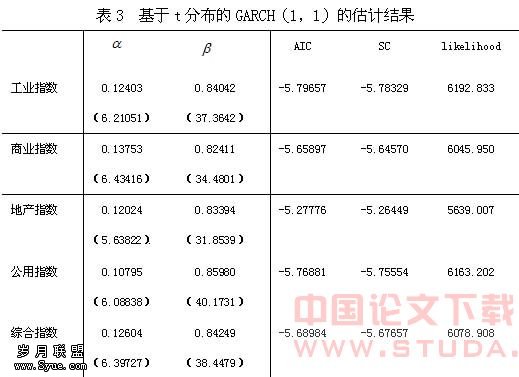 (三)基于不同分布的GARCH(1,1)模型对上证行业指数的实证分析