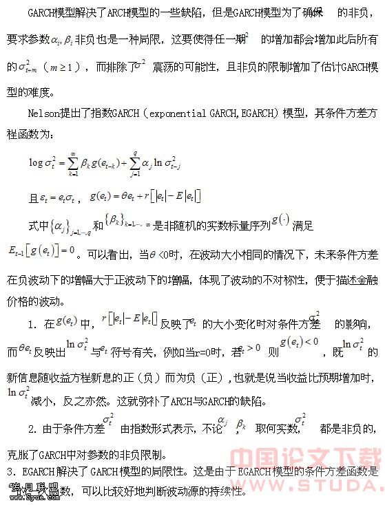 (四)GARCH模型虽然能很好的反映市场波动的持续性,但是却不能很好的说明各种外部因素对金融市场的冲击