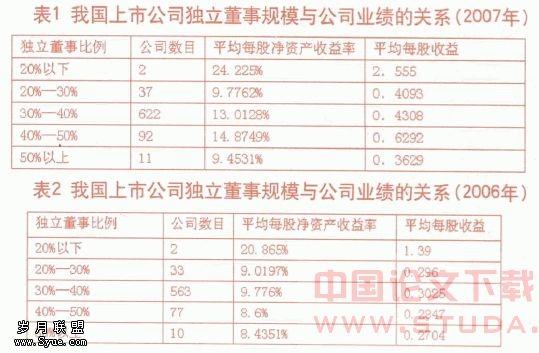 在国内外对于独立董事与公司业绩之间的关系有很多人做过调查研究,但得出的结论却不尽相同。