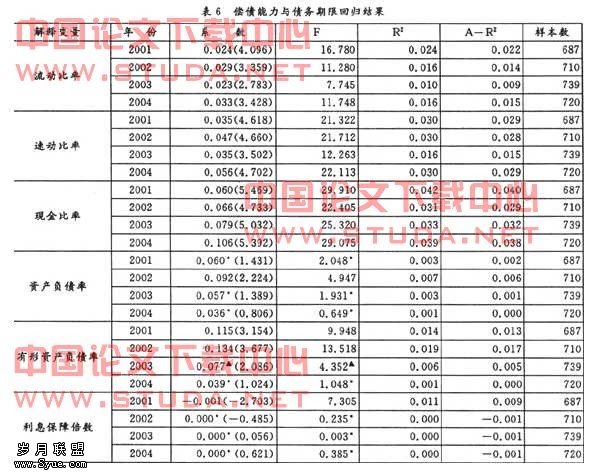 (四)上市公司的偿债能力对其债务期限的影响研究