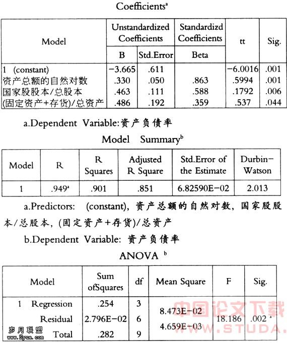 b.Dependent Variable: 资产负债率
