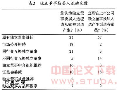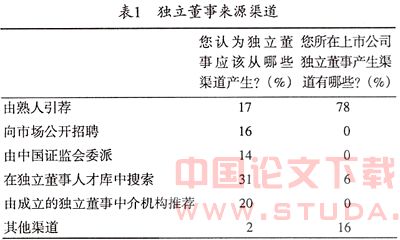 独立董事的来源决定了独立董事的独立性,要想做到真正的独立,首先要使独立董事来源独立。为此笔者对独立董事的来源渠道进行了调查(见表1)。