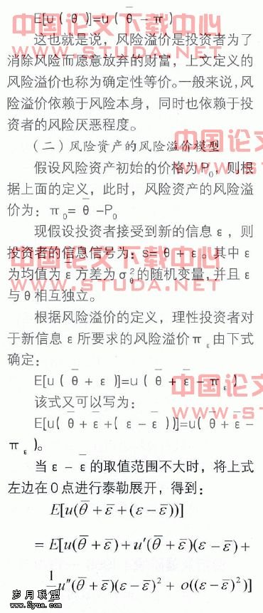 风险厌恶的投资者偏好于确定性的金融资产价格而非不确定性的金融资产价格,这种偏好的强度可以用风险溢价来衡量,王江《金融学》第七章对风险溢价的定义,对投资者买卖金融资产要求的风险溢价定义如下: