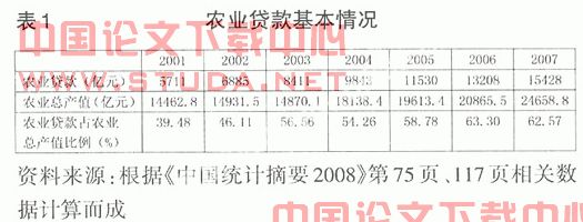 从表1不难看出,农业贷款上升幅度迅猛,从2001年到2007年增长了近24%,占农业总产值的比重也逐年上升,已经达到62.57%。这说明,农业领域对金融资源的消耗是巨大的,提高资金使用效率,减少资金流动中的不经济渗漏,已成为农村金融发展中应当引起高度重视的问题。