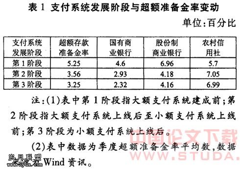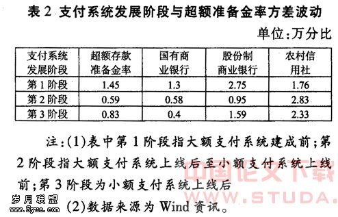 表1表明商业银行的超额准备金率随着支付系统的正在逐渐降低。大额支付系统在全国上线前,平均超额准备金率为5.25%;大额支付系统在全国上线后至小额支付系统全国上线前平均超额准备金率为3.56%;而小额支付系统上线后,平均超额准备金率则为3.25%。虽然超额准备金率的降低可能是由于法定存款准备金率提高的结果,但在央行持续提高法定存款准备金率之前,大额支付系统的建立仍显著降低了商业银行对超额准备金的需求。由于央行持续提高存款准备金率的起始时间为2006年7月5日,所以表1中的第2阶段也是大额支付系统建成后而央行持续提高法定存款准备金率之前的时段,其间超额准备金率平均下降了32.19%,而国有商业银行超额准备金率则下降了36.3%,可见大额支付系统的发展显著降低了商业银行对超额准备金的需求,提高了商业银行的流动性水平。